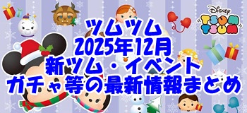 ディズニー ツムツム(Tsum Tsum)の、2025年12月のイベント・新ツム・ピックアップガチャ・セレクトBOX(セレクトガチャ)等の最新情報です。