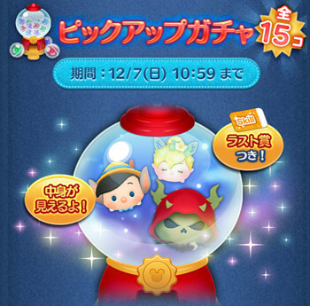 ピックアップガチャ【1回目】 ![]() 開催期間:2025年12月4日11:00~12月7日10:59 ↑いろんなツム詰め合わせ!ラスト賞はスキルチケット! |