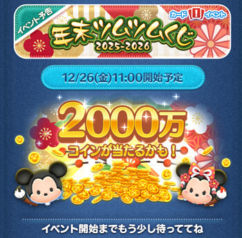 年末ツムツムくじ2025~2026イベント攻略完全まとめ ![]() 開催期間:2025年12月26日11:00~12月31日23:59 |