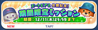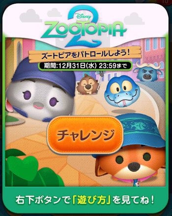 LINEディズニー ツムツム(Tsum Tsum)にて、12月5日より「ズートピア2公開記念!期間限定ミッション」が開催されています。