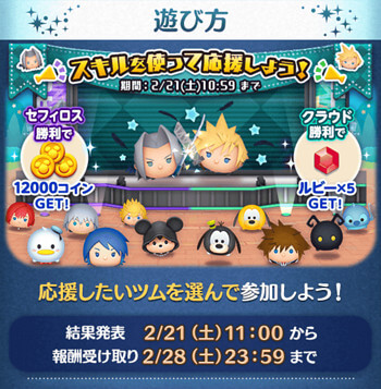 LINEディズニー ツムツム(Tsum Tsum)にて開催される、2026年2月ひろばイベント「スキルを使って応援しよう」の攻略完全まとめです。