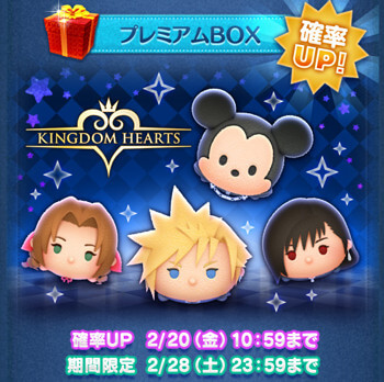 新ツムは、キングダムハーツ2よりクラウド KH2ver.と王様 KH2ver.、ティファ KH2ver.、エアリス KH2ver.、ソラ+が仲間入り!