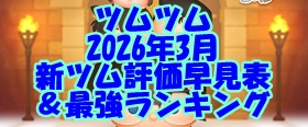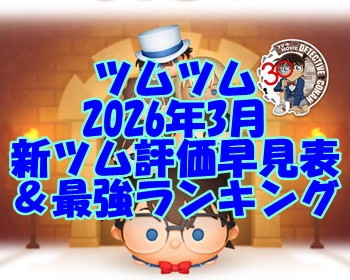 LINEディズニー ツムツム(Tsum Tsum)の2026年3月新ツム(新キャラ)の評価&強さランキングを早見表としてまとめました。