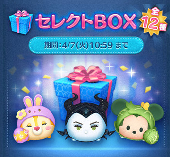 LINEディズニー ツムツム(Tsum Tsum)の、2026年4月セレクトBOX(セレクトボックス/セレクトガチャ)は、いろんなツム詰め合わせとなっています。