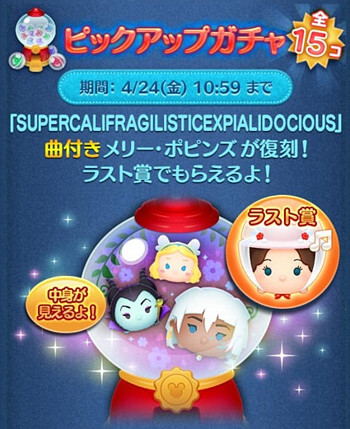 LINEディズニー ツムツム(Tsum Tsum)にて、2026年4月ピックアップガチャ2回目は、ラスト賞に曲付きメリーポピンズ!
