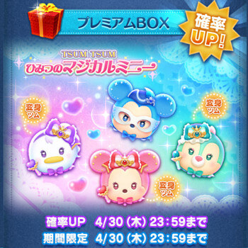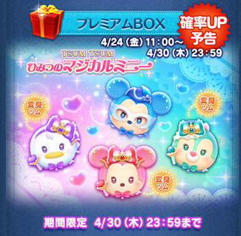2026年4月新ツム4体の確率アップ ![]() 開催期間:2026年4月24日11:00~4月30日23:59 |