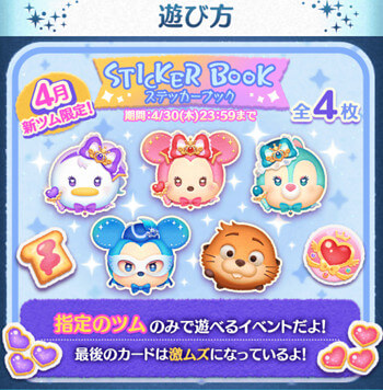 LINEディズニー ツムツム(Tsum Tsum)の2026年4月イベント「ステッカーブック」の4枚目の完全攻略まとめです。