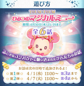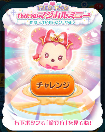 LINEディズニー ツムツム(Tsum Tsum)にて開催される、2026年4月イベント ひみつのマジカルミニーの攻略完全まとめです。