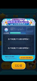 3月18日11時より、新ツムの確率アップが来ます。