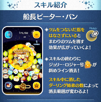 スキルは、少しの間ピーター・パンと一緒に消せるダーリング姉弟がでるよ!というツム変化系&特殊系。
