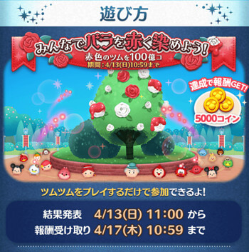 ひろばイベント:みんなでバラを赤く染めよう~赤色のツムを100億個~
