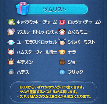 今回のセレクトBOXは、いろんなツム詰め合わせとなっています。
