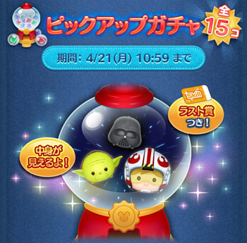 今回のピックアップガチャは、スターウォーズツムのみがラインナップになっています。