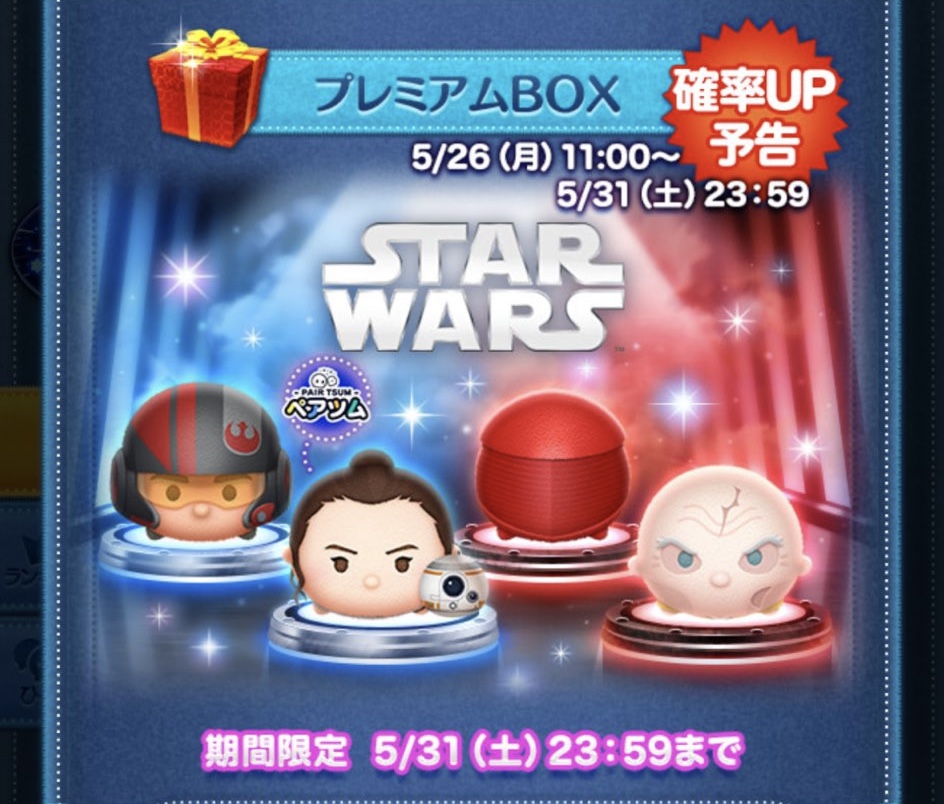 新ツム第2弾は、スターウォーズシリーズより2体追加&確率アップとなります。