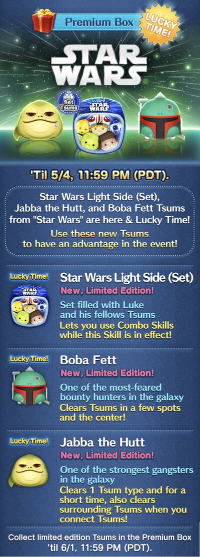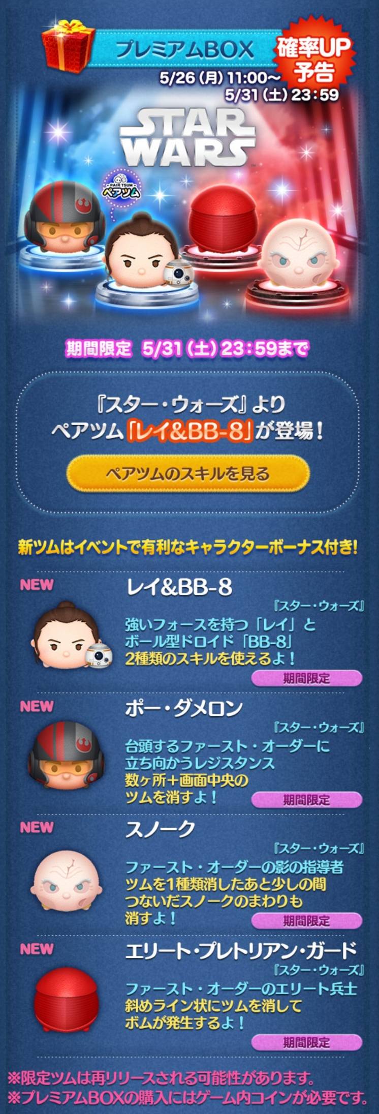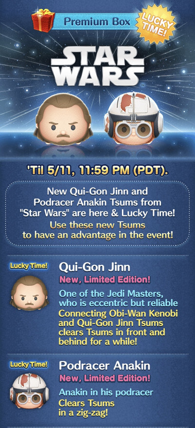 新ツム第1弾:スターウォーズシリーズ2体追加&確率アップ