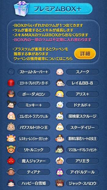 | 新ツム | 確率アップ | プレミアムBOX+ラインナップ |