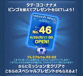 ツムツム 2025年4月28日にビンゴカード46枚目が追加!報酬はR2D2のツム!