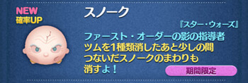 新ツム第1弾は、スターウォーズシリーズより2体が追加され確率アップとなります。