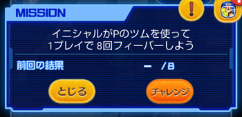 このミッションは、イニシャルがPのツムで8回フィーバーするとクリアになります。