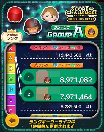 ツムツム 2023年5月スコアチャレンジSランク等ボーダー予想&推移速報