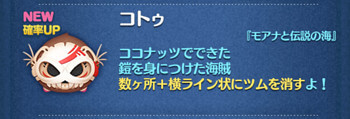 今回はモアナは期間限定、コトゥは常駐ツムとなります。