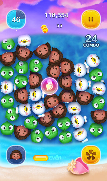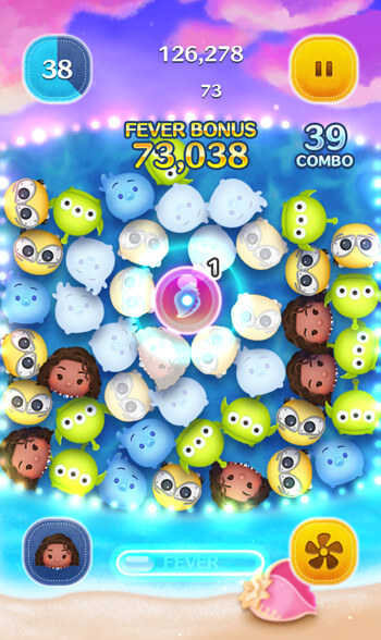 4個以上あれば、1回のタップで30個以上のツムを消すことも。