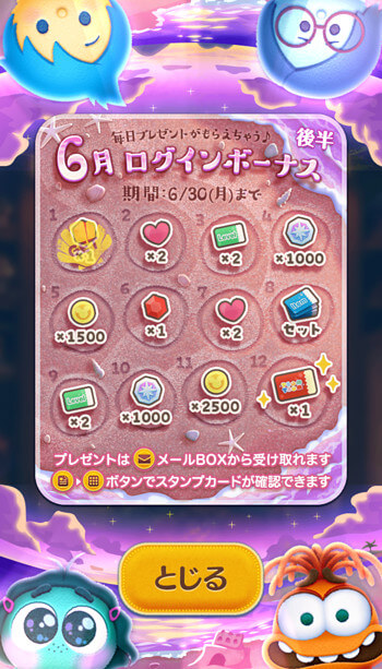 LINEディズニー ツムツム(Tsum Tsum)にて、2025年6月16日より「ログインボーナス後半」が始まりました。