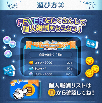 なお、今回はフィーバーなのでフィーバー発生系ツムを使うとより貢献できます。