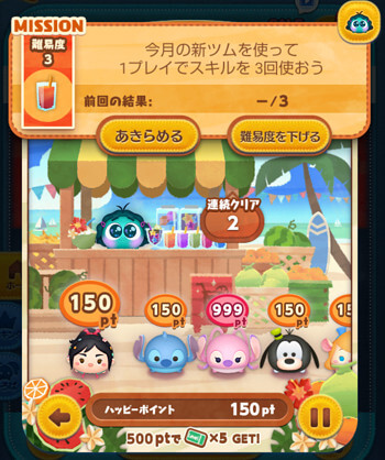 6月の新ツムを使って1プレイでスキルを5回使おう