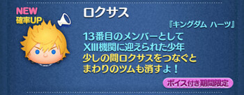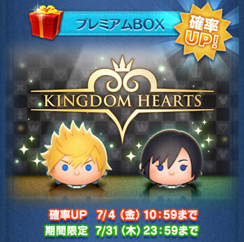 新ツム第1弾は、キングダムハーツシリーズより2体が追加され確率アップとなります。