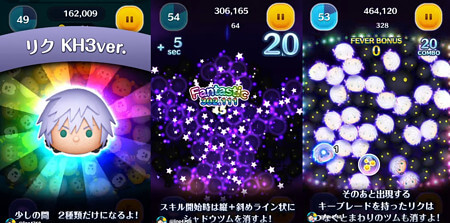 その後出現するキーブレードを持ったリクを消すと、周りを巻き込みながらツムを消していきます。