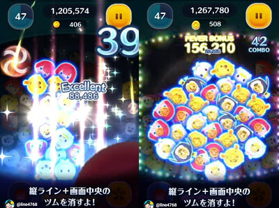 その後、画面中央のツムを消す2段階タイプですね。
