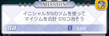 このミッションは、イニシャルがSのツムでマイツムを合計570個消すとクリアになります。