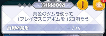 このミッションは、茶色のツムでスコアボムを15個消すとクリアになります。