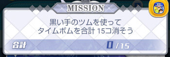 このミッションは、黒い手のツムでタイムボムを15個消すとクリアになります。