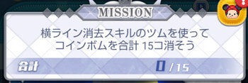このミッションは、横ライン消去スキルのツムでコインボムを合計15個消すとクリアになります。