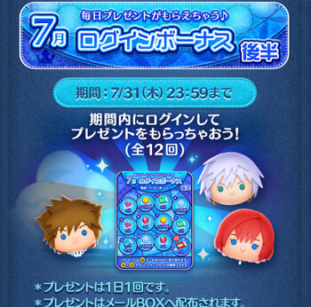 LINEディズニー ツムツム(Tsum Tsum)にて、2025年7月16日より「ログインボーナス後半」が始まりました。