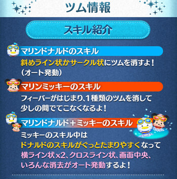 マリンドナルド&ミッキーはペアツムなので、2種類のスキルを使えるよ!となっています。