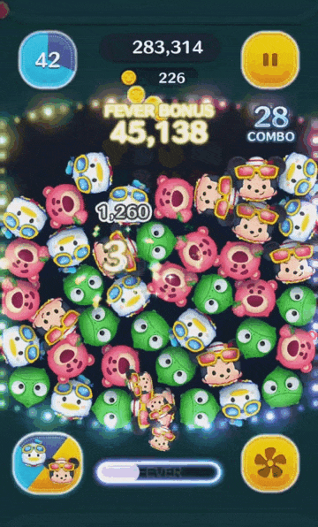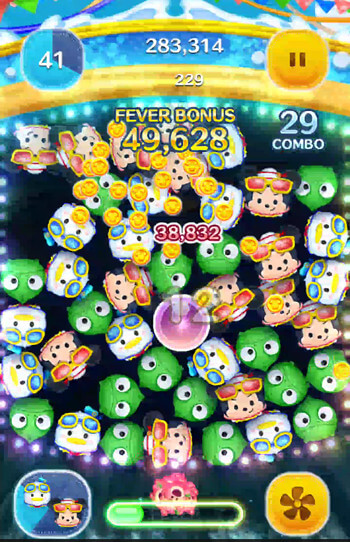・ミッキー→フィーバーがはじまり1種類のツムを消して少しの間でてこなくなるよ!