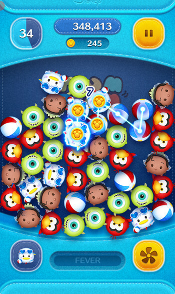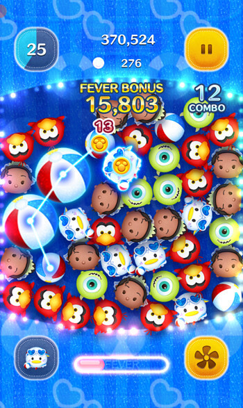 大きなビーチボールは、繋げて消すと周りのツムも巻き込んで消します。
