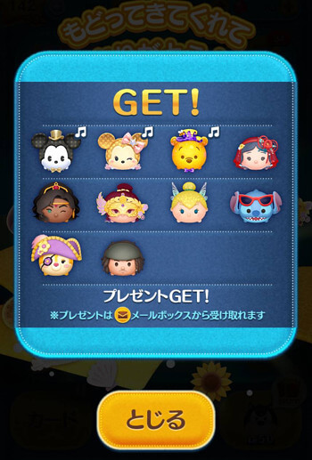 画面に表示されているプレゼントBOXをタップすると、中からツムが飛び出してきます。