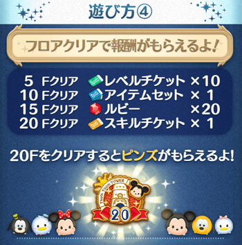 | 20Fクリア | スキルチケット 1枚 ピンズ |