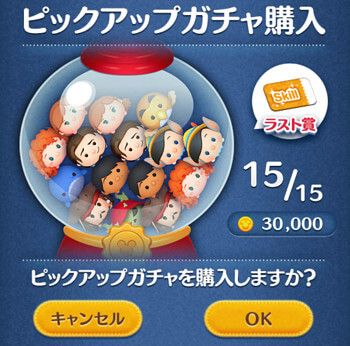 ピックアップガチャは1回引くのに30,000コインが必要です。
