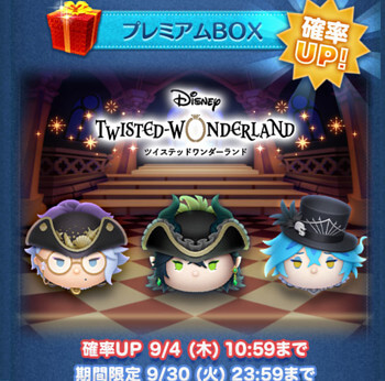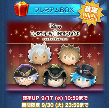 新ツム第2弾は、ツイステッドワンダーランドシリーズより2体追加&確率アップとなります。