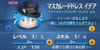 LINEディズニー ツムツム(Tsum Tsum)で、2025年9月1日に追加された「マスカレードドレスイデア」の評価とスキルの使い方です。
