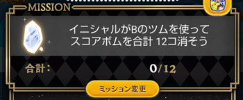このミッションは、イニシャルがBのツムでスコアボムを合計12個消すとクリアになります。