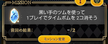 このミッションは、黒い手のツムでタイムボムを2個消すとクリアになります。