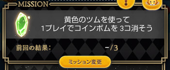 このミッションは、黄色のツムでコインボムを3個消すとクリアになります。