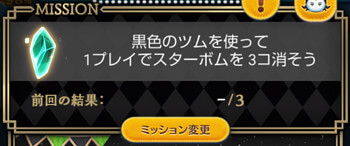 このミッションは、黒色のツムでスターボムを3個消すとクリアになります。