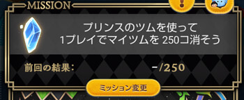 プリンスのツムを使って1プレイでマイツムを250個消そう!のミッション概要